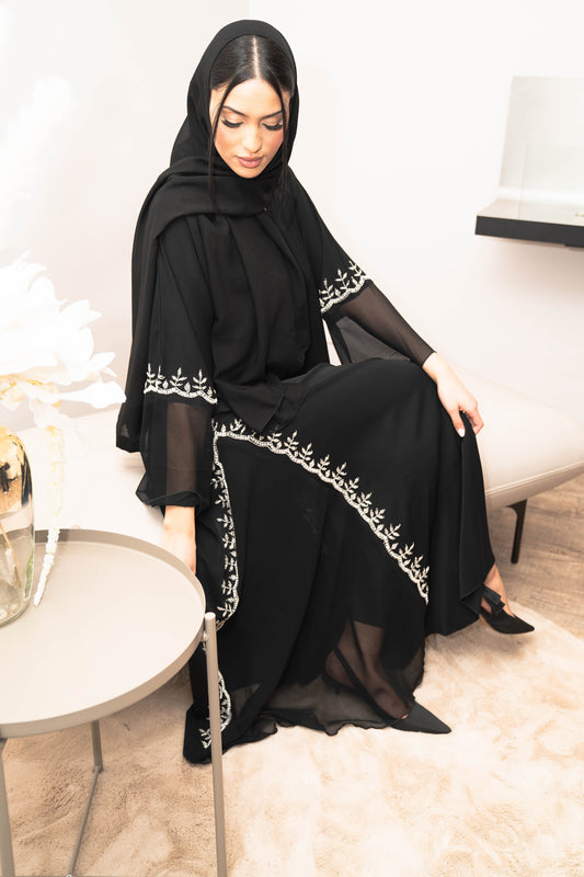 Elegante Abaya mit Tüll-Details und Steinverzierungen