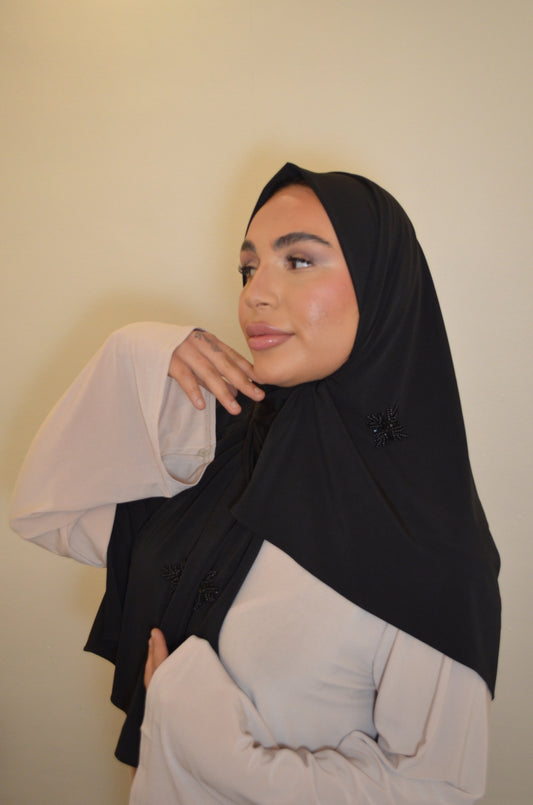 AusverkauftJersey Premium Hijab mit Handmade Stones Schwarz