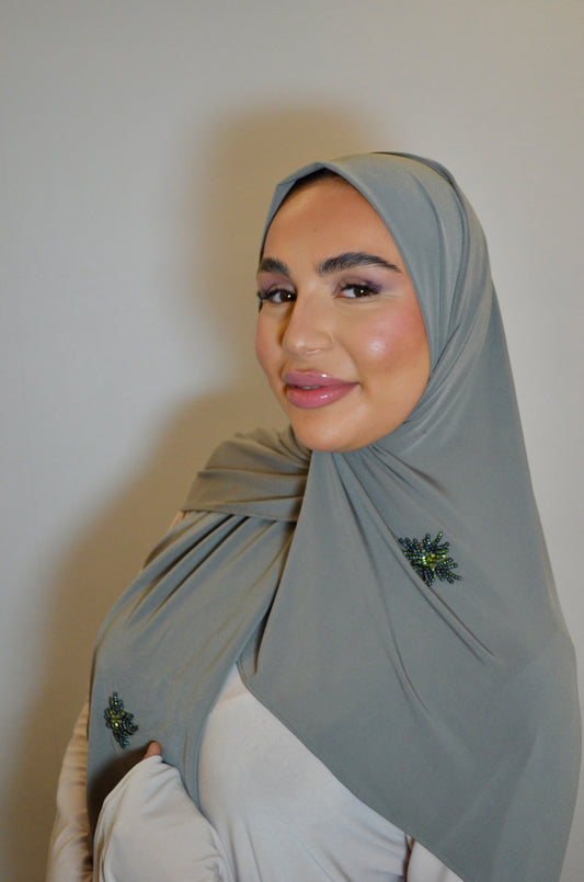 Jersey Premium Hijab mit Handmade Stones Moosgrün